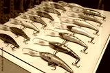 Fishing lures and supplies on the counter of the store