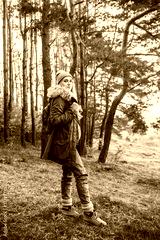 Hiking and travel along in the forest. Concept of trekking, adventure and seasonal vacation. Young woman walking in woods.