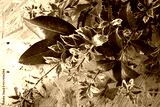 Foglie di magnolia e rami di agrifoglio su pannello in legno