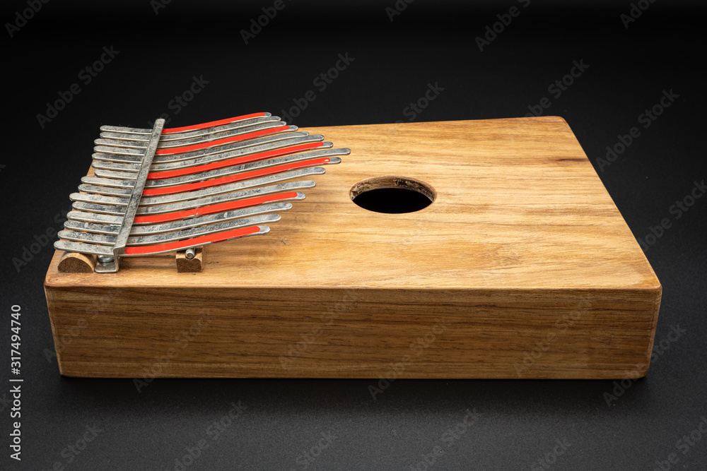 Thumb piano (Kalimba, Mbira) with silver and red tines