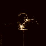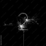 Burning sparkler in shape of number two, digit 2, isolated on black background.