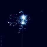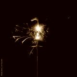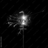 Burning sparkler in shape of number one, digit 1, isolated on black background.