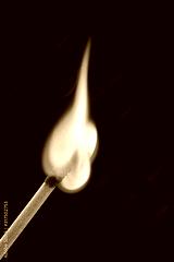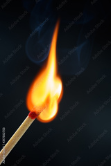 Match stick ignited burning bright big fire flame with smoke on black background.
