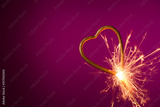 Burning sparkler in shape of heart. Wedding love Valentine's day banner.