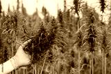 Scientist show hemp plants with seeds for oil on the agricultural field