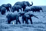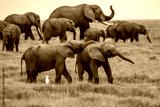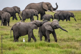 Two young elephants playing together in Africa, cute animals in the Amboseli park in Kenya