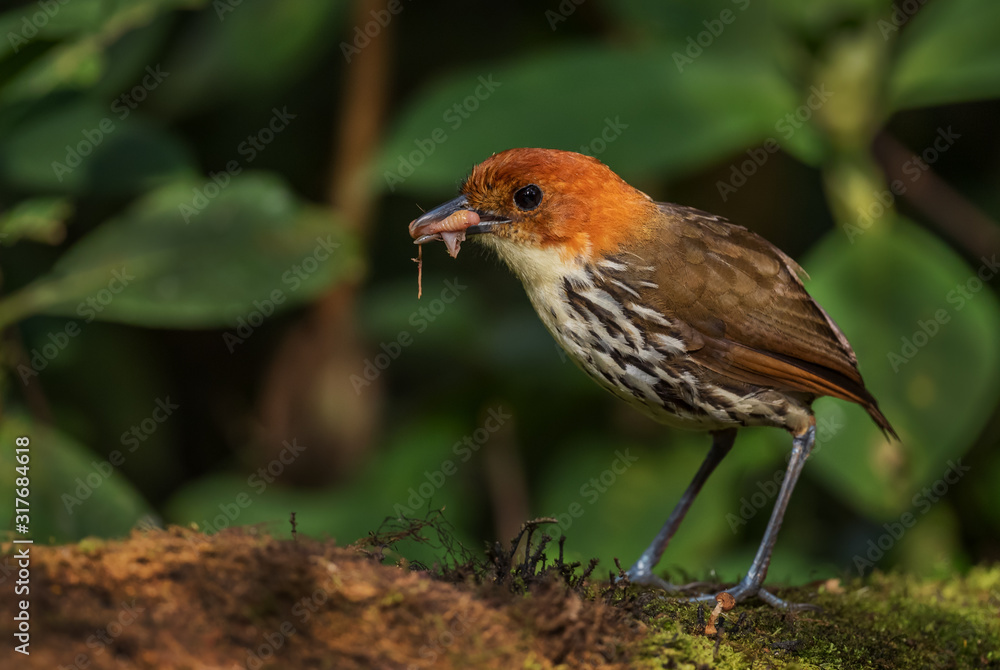 Chestnut-crowned Antpitta - Grallaria ruficapilla, special shy hidden bird from Andean forests, Antisana, Ecuador.