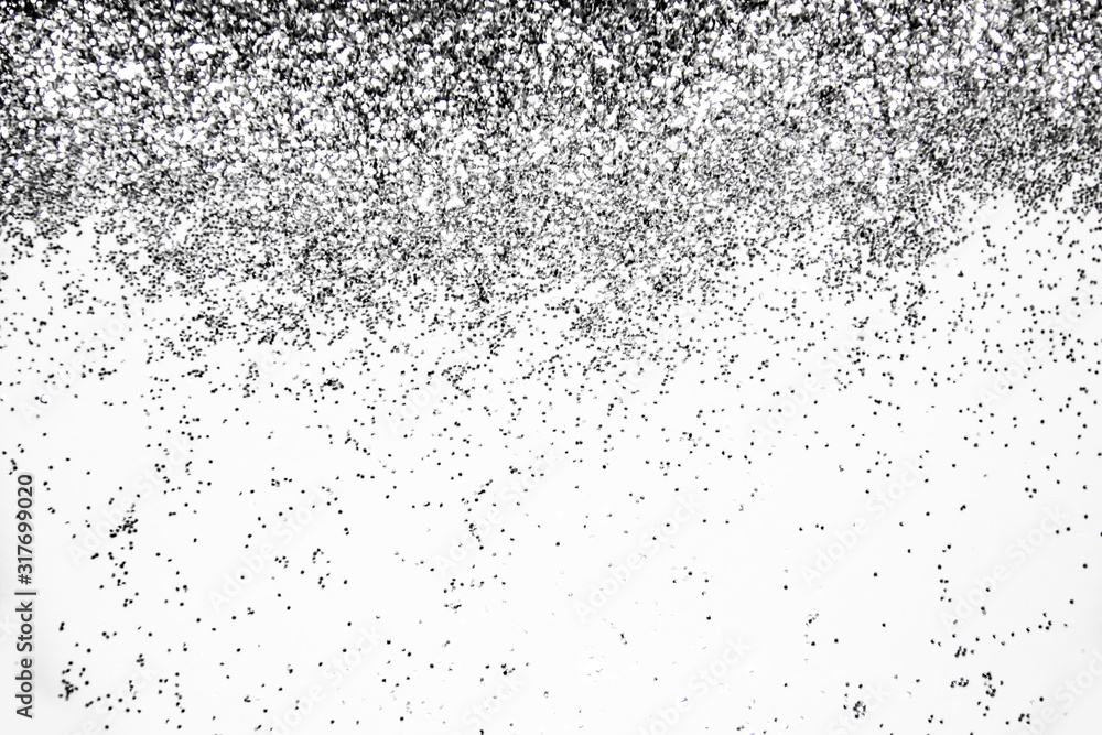 A composition with beautiful silver glitter. Background and texture of silver glitter. Luxury silver glitter sparkle shining texture background