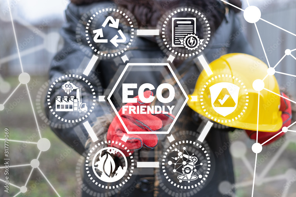 ECO Friendly Modern Industry Concept. Ecological Green Production and Energy. CO2 Pollution Reduction.