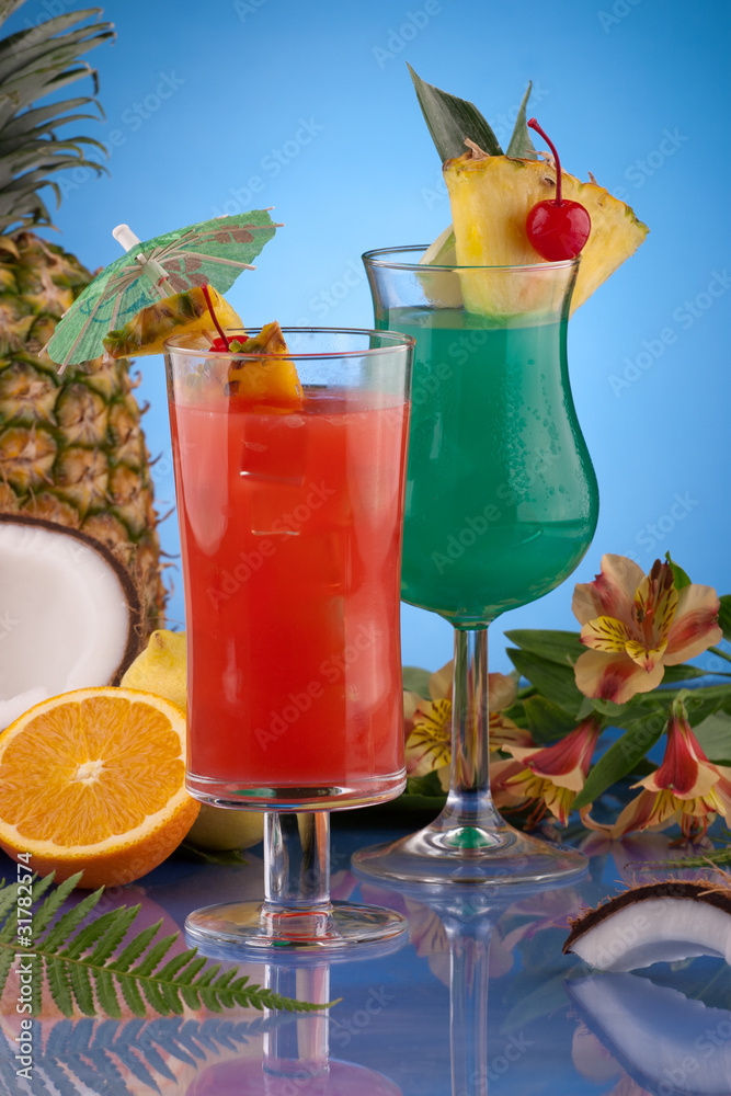 Most popular cocktails series - Blue Hawaiian and Hurricane