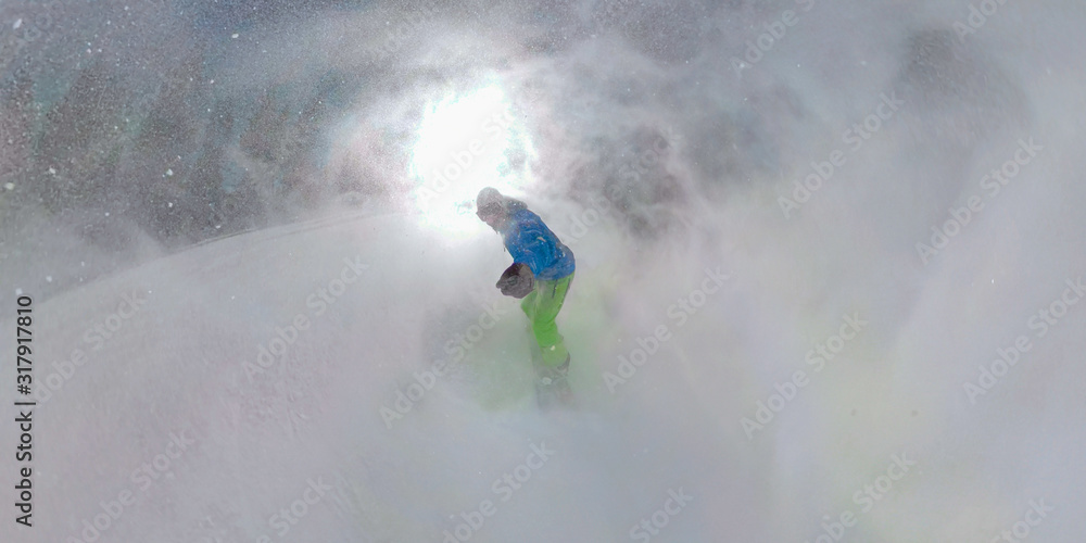 SELFIE: Young man on winter vacation in Colorado snowboards through a blizzard.