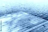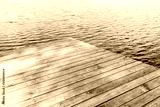 wooden pier on dark water background
