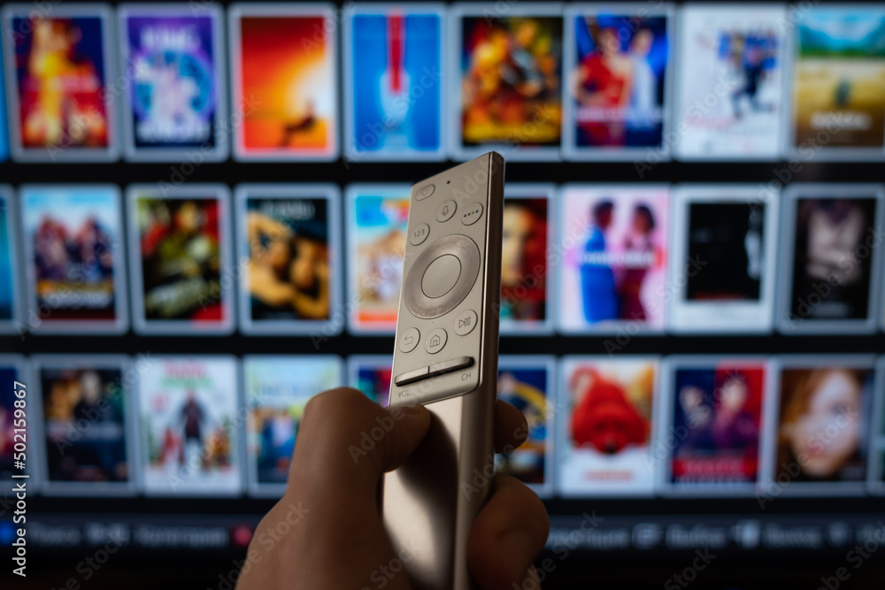 Cute baby costume Easter bunny. Knitted bodysuit with fluffy bunny ears, Easter eggs and candy on blue background. Holiday concept. Flat lay, top view