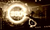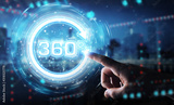 Man hand using 360 degree virtual reality neon interface 3D rendering