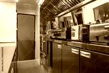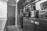 The mobile kitchen. Mobile restaurant. Compact mobile kitchen. Stainless steel kitchen appliances. Cooking equipment. Public catering establishment. Cafe. Restaurant.