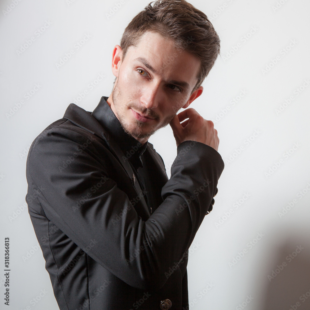 Handsome young elegant man studio portrait.
