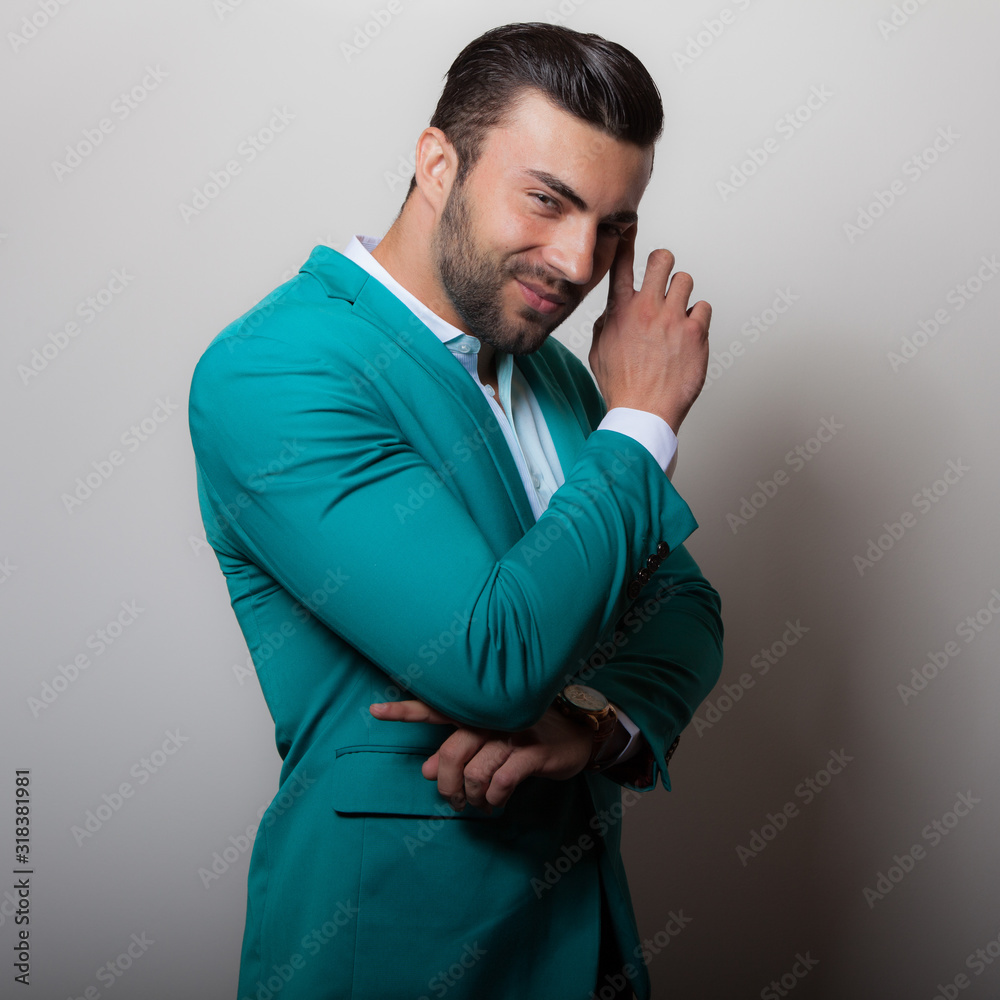 Handsome young elegant man studio portrait.