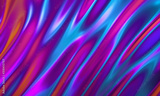 3d render, abstract wavy liquid background, ultraviolet holographic foil, petrol surface, pink blue iridescent texture, ripples. Modern fashion textile, trendy design, metallic fabric reflections