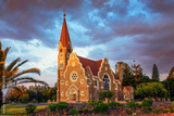 Sunset above Christchurch, a historic lutheran church in Windhoek, Namibia