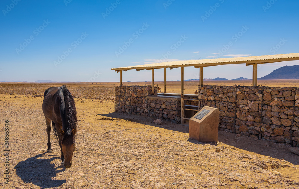 Wild horse of the Namib desert at observation viewpoint near Aus, south Namibia