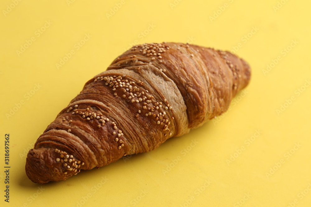 delicious spelled croissant in color background
