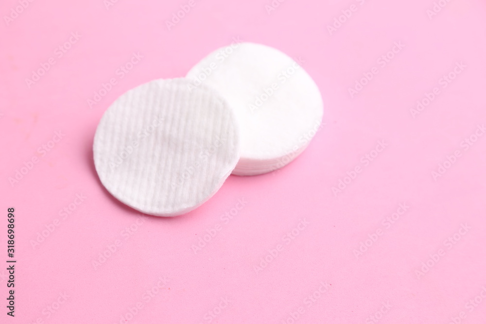 Cleansing cotton discs in colorful background