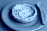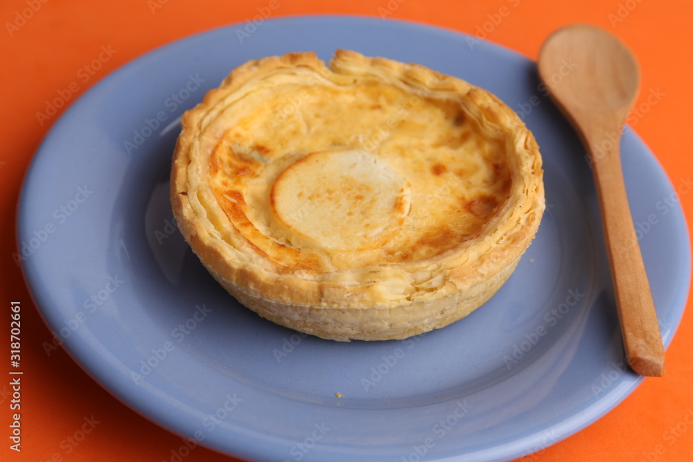 Delicious three cheese quiche in colored background