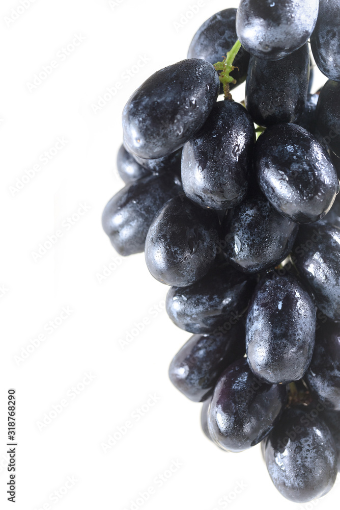 Bunch of grapes covered with drops of water isolated on white background.