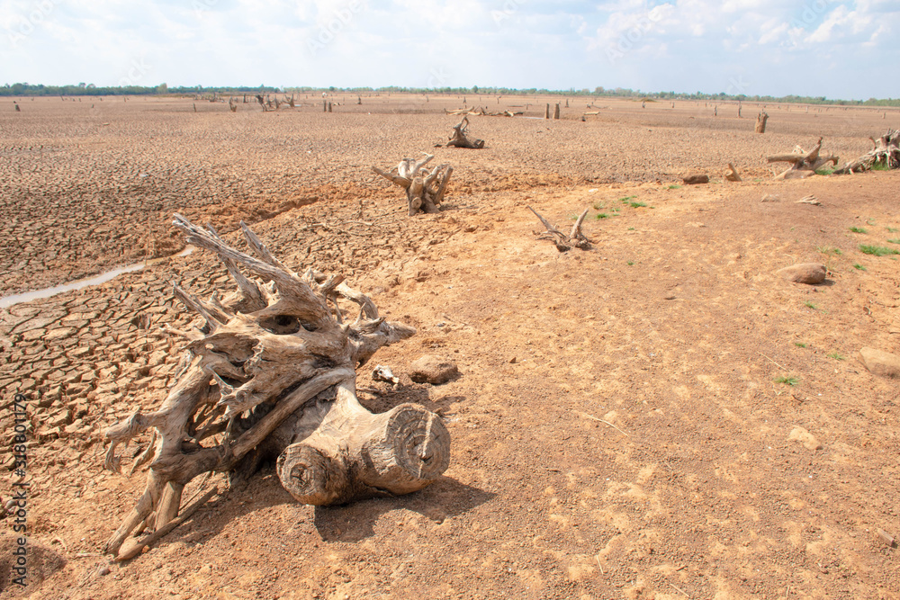 Drought and summer season, Hot landscape. Close up image of cracked dry land.