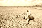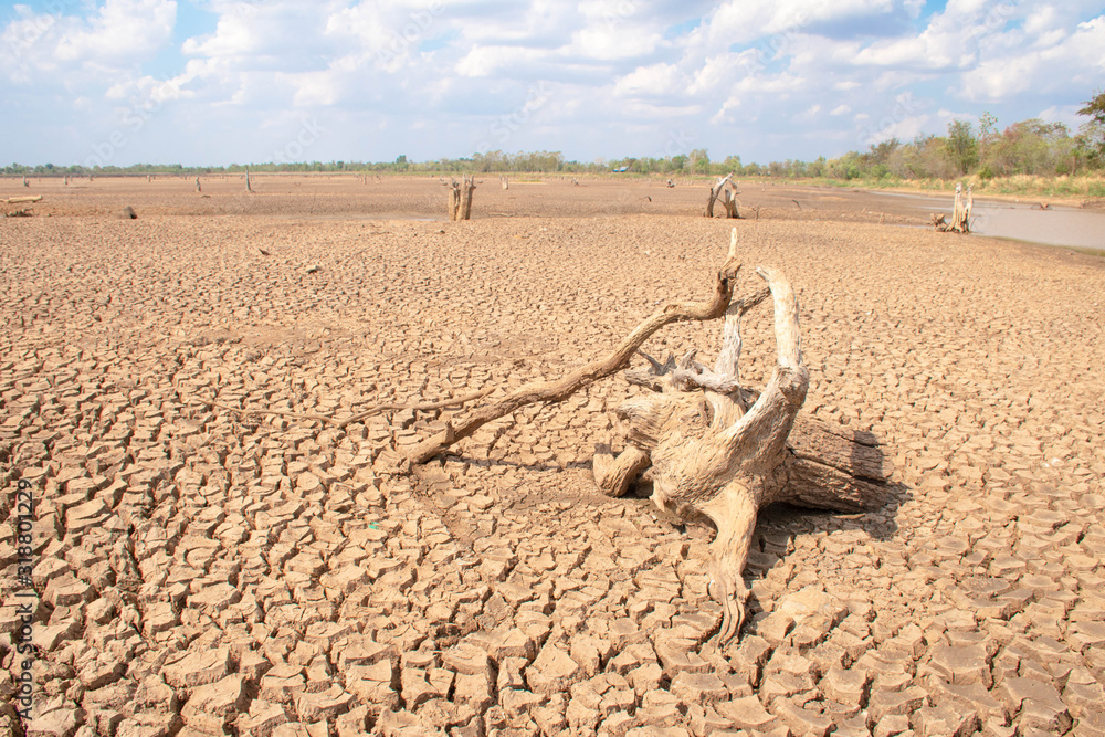 Drought and summer season, Hot landscape. Close up image of cracked dry land.