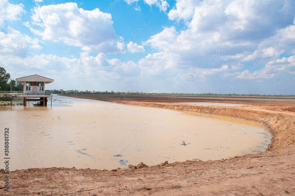 Drought and summer season, Hot landscape. Close up image of cracked dry land.