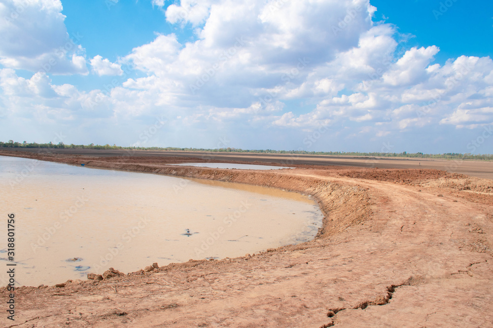 Drought and summer season, Hot landscape. Close up image of cracked dry land.
