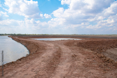 Drought and summer season, Hot landscape. Close up image of cracked dry land.