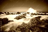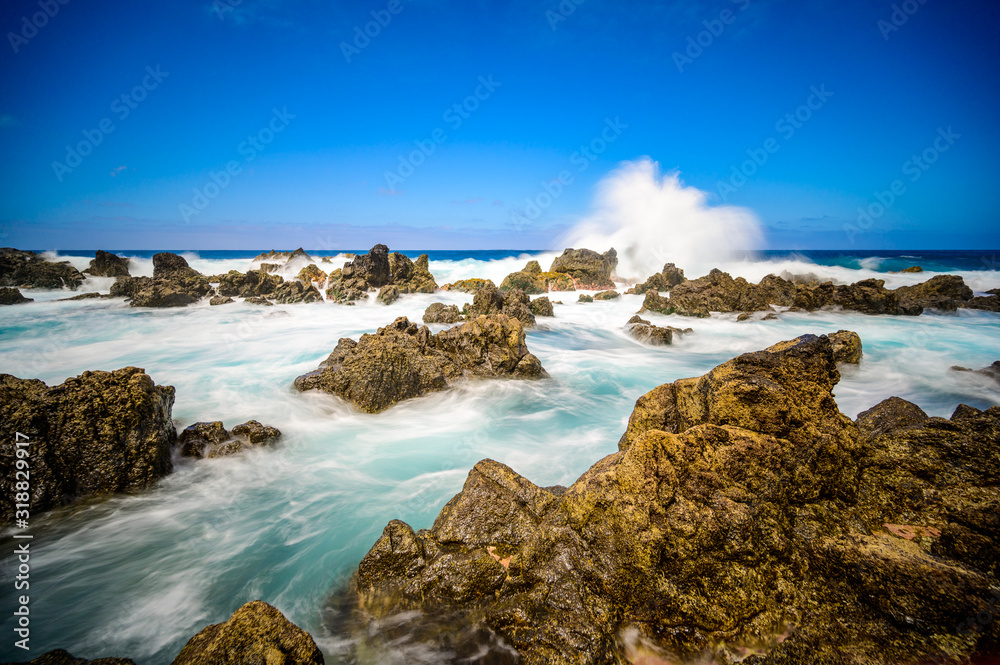 Porto Moniz - Long exposure of rocks and waves at vulcanic coast - beautiful landscape scenery of Madeira Island, Portugal