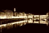 Ponte Vecchio bridge and Arno river waterfront in Florence evening view