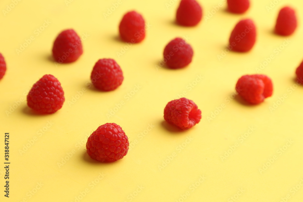 delicious raspberries in colorful background