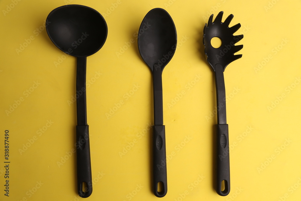 kitchen utensils in color background