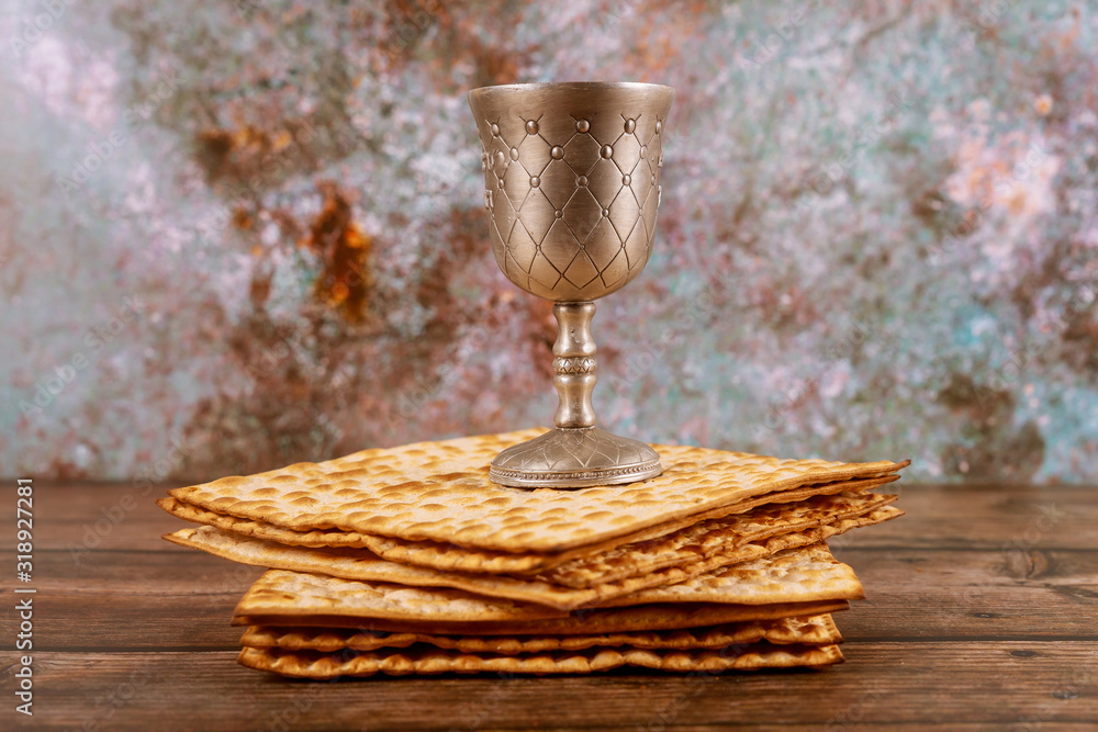 Kosher kiddush in silver cup. Jewish holiday concept.