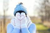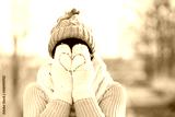 Frau mit Handschuhen mit Herz
