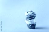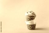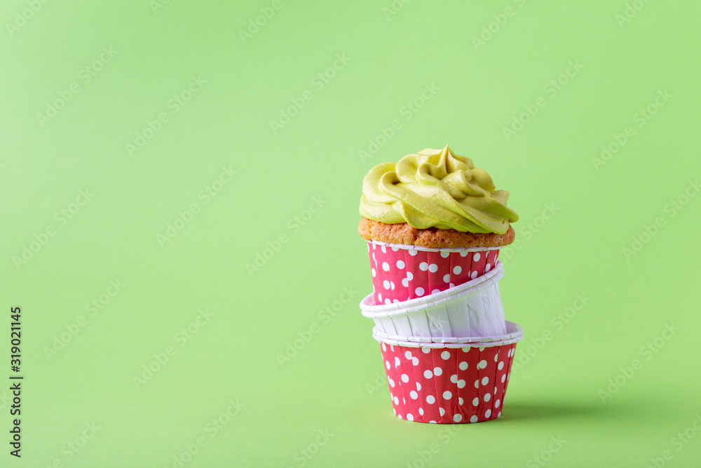Birthday cupcake in funny polka dot red and white colorful cups stack