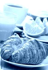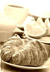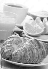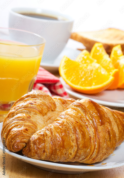 breakfast with croissants, juice and coffee