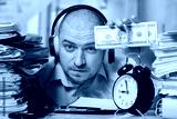 Best motivation is money. Happy businessman working in the office for the money. Selective focus on US Dollar bills.