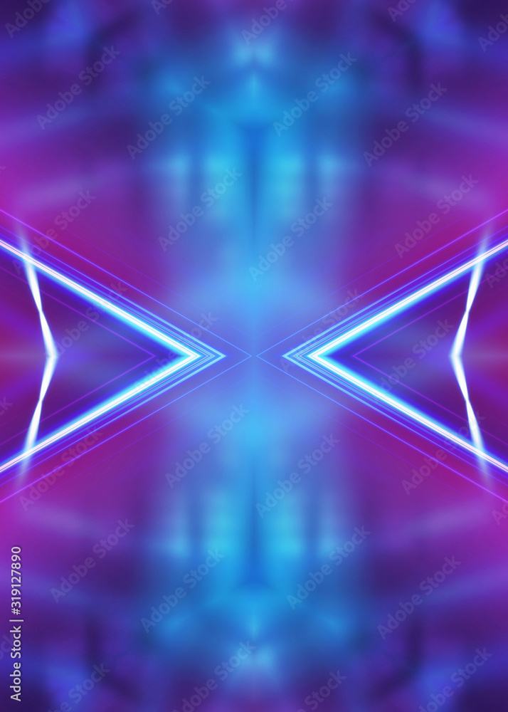 Dark abstract futuristic background. Neon glow, light lines, shapes. UV light.