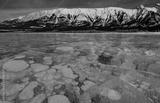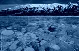 CLOSE UP: Crystal clear Lake Abraham is surrounded by snowy Canadian Rockies.