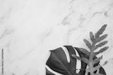 Topical jungle leaves on a modern marble background