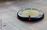 Queue Paging Wireless Calling System on wooden table. managenet customer for self service in restaurant or coffee shop.
