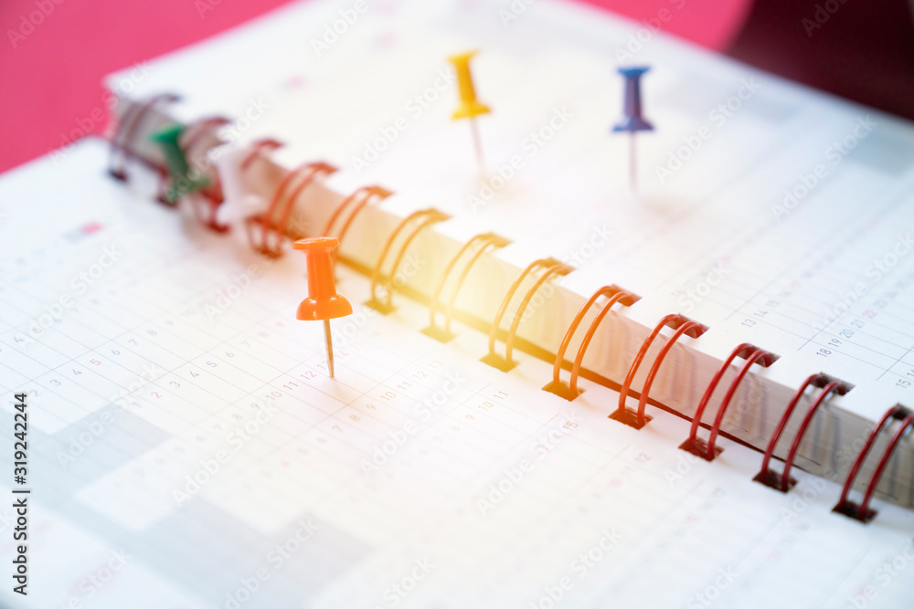 close up of calendar on the table, planning for business meeting or travel planning concept