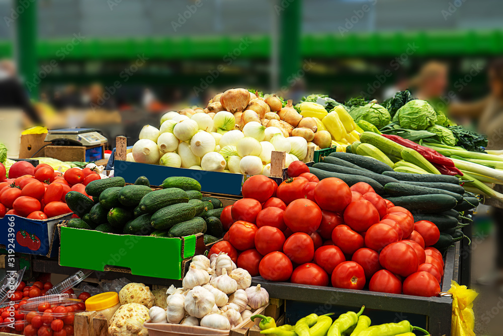 Woman buying fresh and organic fruits and vegetables at the green market.