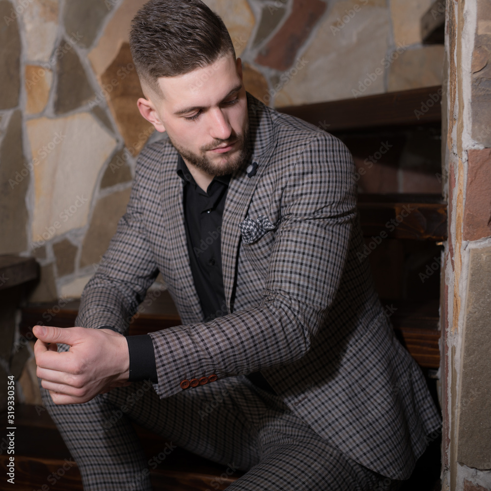 Handsome young elegant man in house interior.