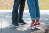 Couple kissing outdoors - Lovers on a romantic date at sunset,girls stands on tiptoe to kiss her man